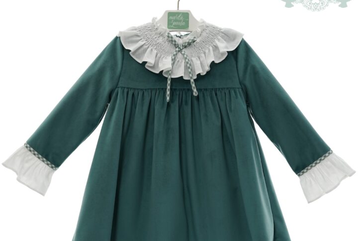 pelele en tejido suave velvet tono celeste empolvado , con detalle de nidos en pecherin, cuello bebe rematado puntillas , botones en espalda y bajo , interior forrado .