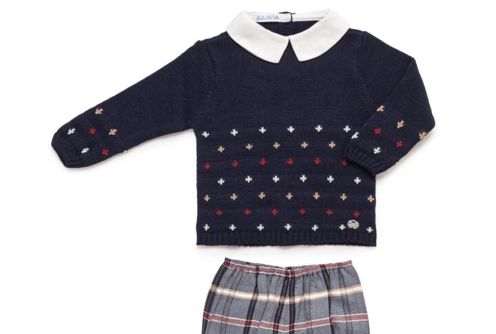 conjunto de jersey en punto canale tono verde musgo con detalle de dibujo en greca en frontal con mini pompon al tono , cuello bebe en tejido, botones en espalda apertura total, ranita en tejido cuadros al tono , interior forrado , perneras y cintura engomadas, totalmente unisex.