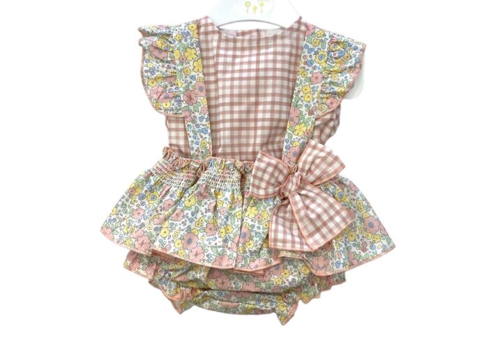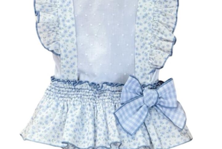 camisa manga corta en tejido rayas tonos azul empolvado cuello mao apertura delantera con botones , pantalon suave tejido en tono arena , totalmente forrado , tipo bombachito con cintura ajustable hasta talla 18meses y pantalon corto con cintura trasera engomada a partir de talla 24m.