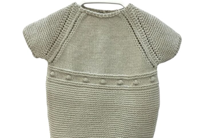 Pelele tirantes en hilo tono rosa empolvado , con todo en frontal calado en rombos . botones en bajo y tirantes. totalmente unisex.