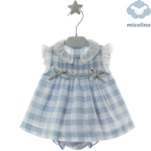 Pelele en tejido vichi en tonos verde empolvado , manga corta engomada, con detalle de mini bolsillos en hilo al tono en el cuerpo, botones en bajo y espalda, totalmente forrado.