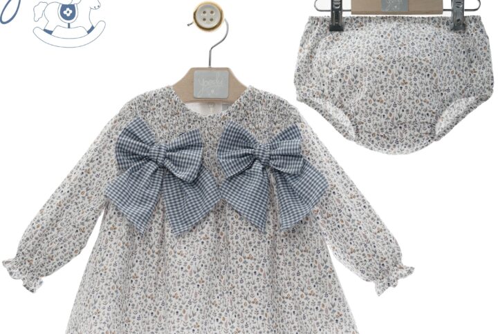 vestido en tejido combinado cuerpo en suave muselina tono verde turquesa , con tejido estampado floral al tono, interior forrado, braguitas incluidas , cierre trasero con cremallera.