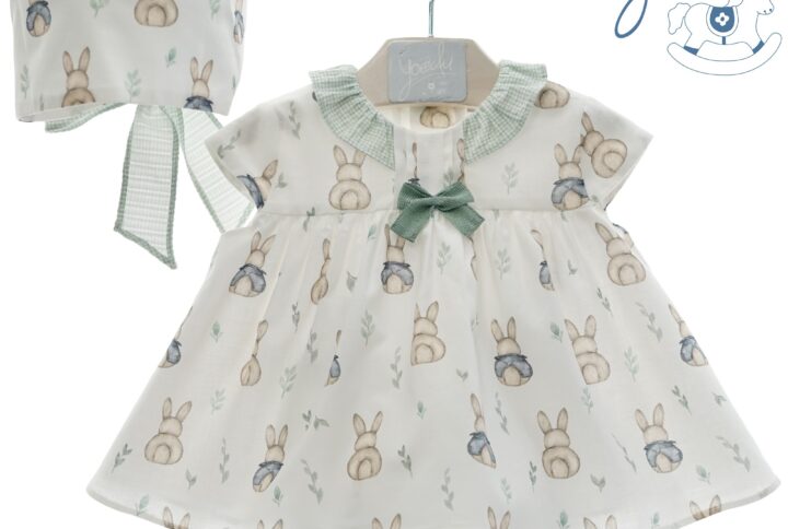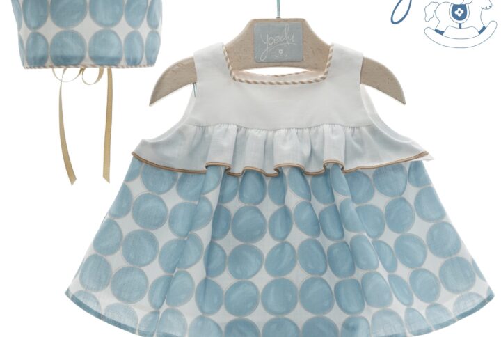 vestido en tejido estampado , con cuello volante en algodon brocado, lazada en tejido en frontal , braguita en tejido vichi fluor vestido con botones en parte trasera , apertura total, totalmente forrado.