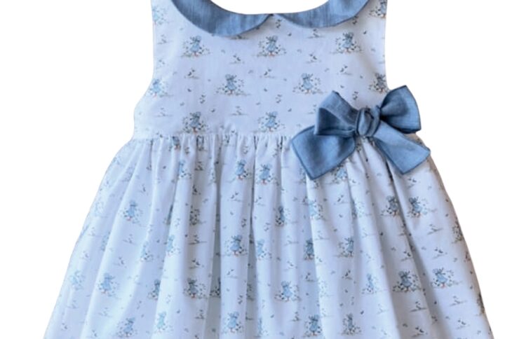 vestido vuelo que combina dos tejidos con tonos en suave vichi rosa estampado para la totalidad del vestido y en el doble volante del pecherin hasta el escote de la espalda combinando tejidos, interior forrado, lazada trasera no desmontable, cierre con botones en espalda con apertura total, braguita a juego incluida.